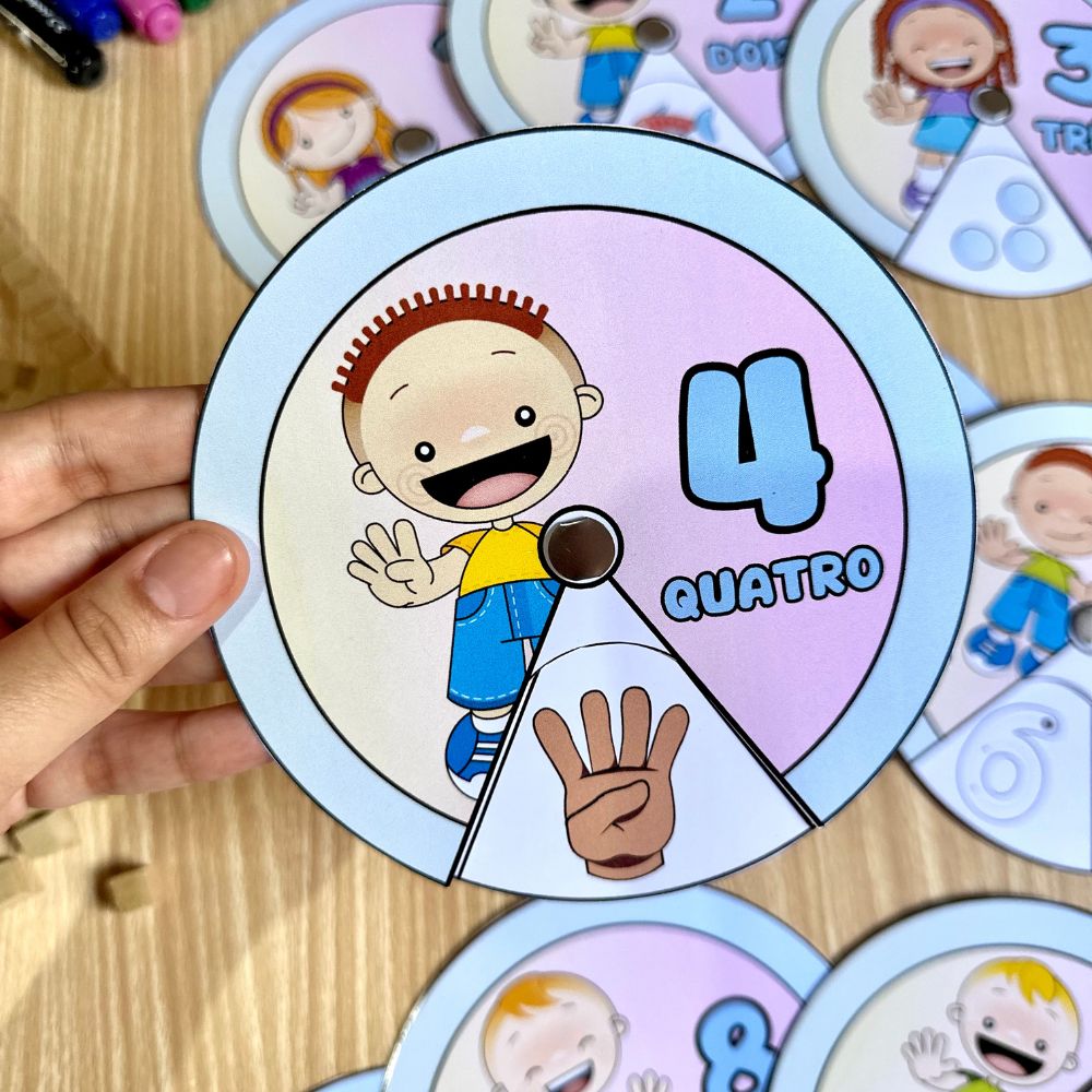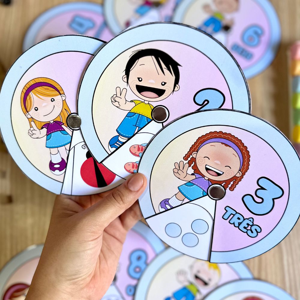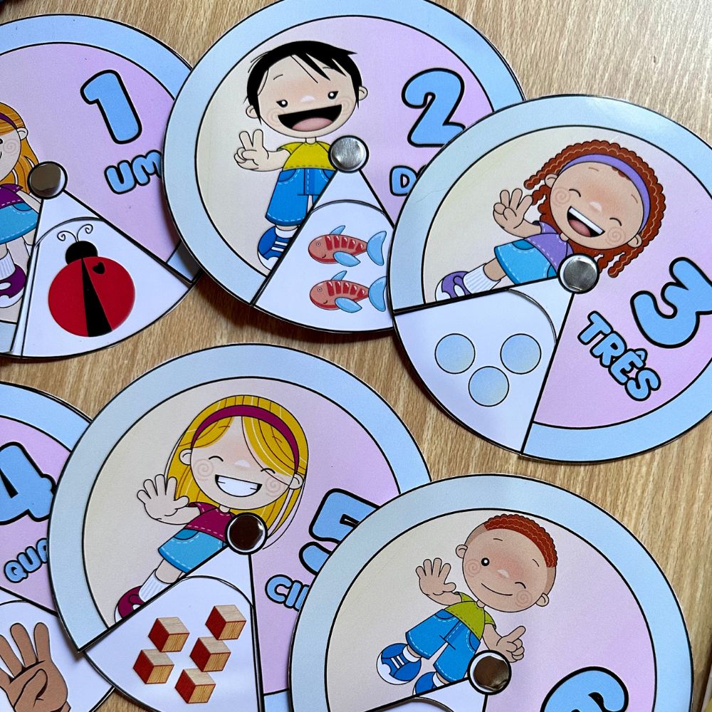 As Roletas Interativas dos Numerais (1 a 10) ajudam a criança a compreender números de forma concreta, visual e divertida.